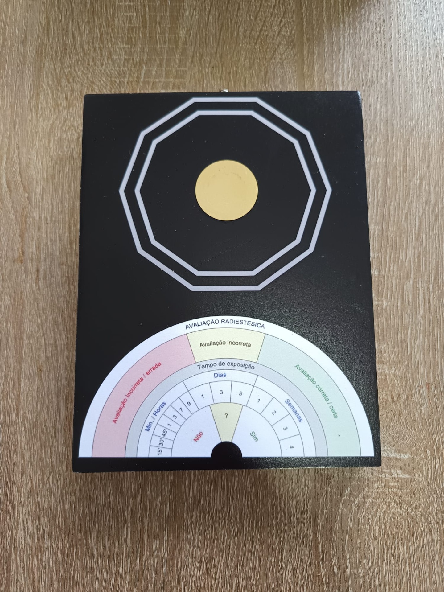 uma base de diagnóstico com teleradiador no seu interior, ligada ao aparelho Ômega v2, onde se coloca o "testemunho" ao centro do Decágono, sobre uma placa piezoelétrica.